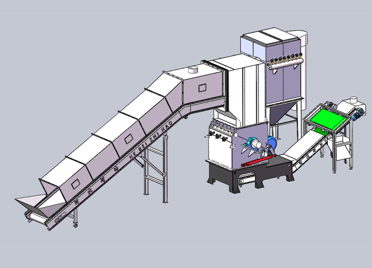 Renewable Resource Equipment The crusher drives the moving knife head to rotate at high speed through the motor. During the high-speed rotation of the moving knife, it tends to form a relative movement with the fixed knife. The gap formed between the moving knife and the fixed knife creates a plastic crushing shear cut to crush large pieces of plastic. The crushed plastic is filtered through the screen to output the plastic particle size.