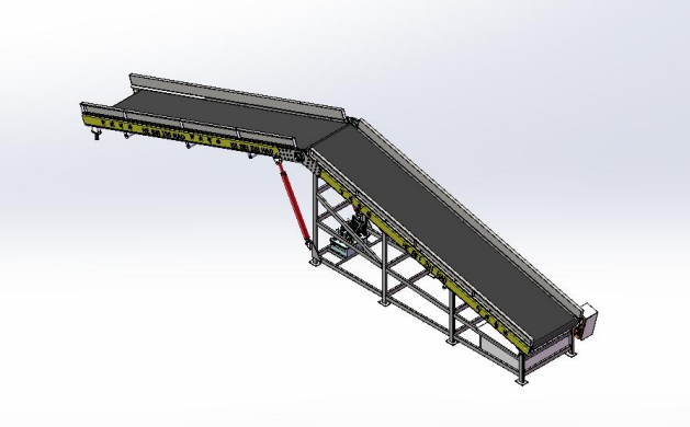 升降皮(pí)帶(dài)輸送機(jī)包含主動輥裝配,支腿,托輥,框架,被動輥裝配(pèi),上托輥,下托輥及液壓缸。主動輥裝配由直徑 140mm 滾筒,帶方形座軸承UELFU210,GSAF67 斜齒輪-蝸輪(lún)蝸杆減速機配(pèi)2.2KW電機及防(fáng)跑偏裝(zhuāng)置構成。上托輥由帶方(fāng)形座軸承 UELFU210,防跑偏裝(zhuāng)置及直徑140mm滾筒組成。下托輥由直徑 76mm 滾筒組(zǔ)成。被動輥裝配由直徑140mm滾筒,帶(dài)滑塊座軸承UCK209 及防跑偏裝置組成。